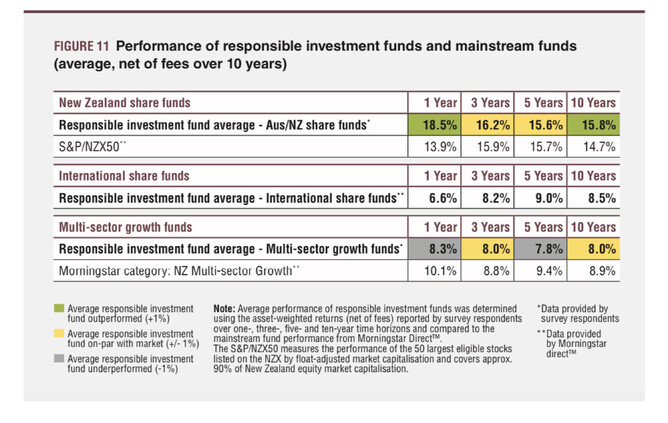 This tells us that on average responsible investment funds are performing the same if not better than the those top 50 companies listed on NZ's stock exchange.